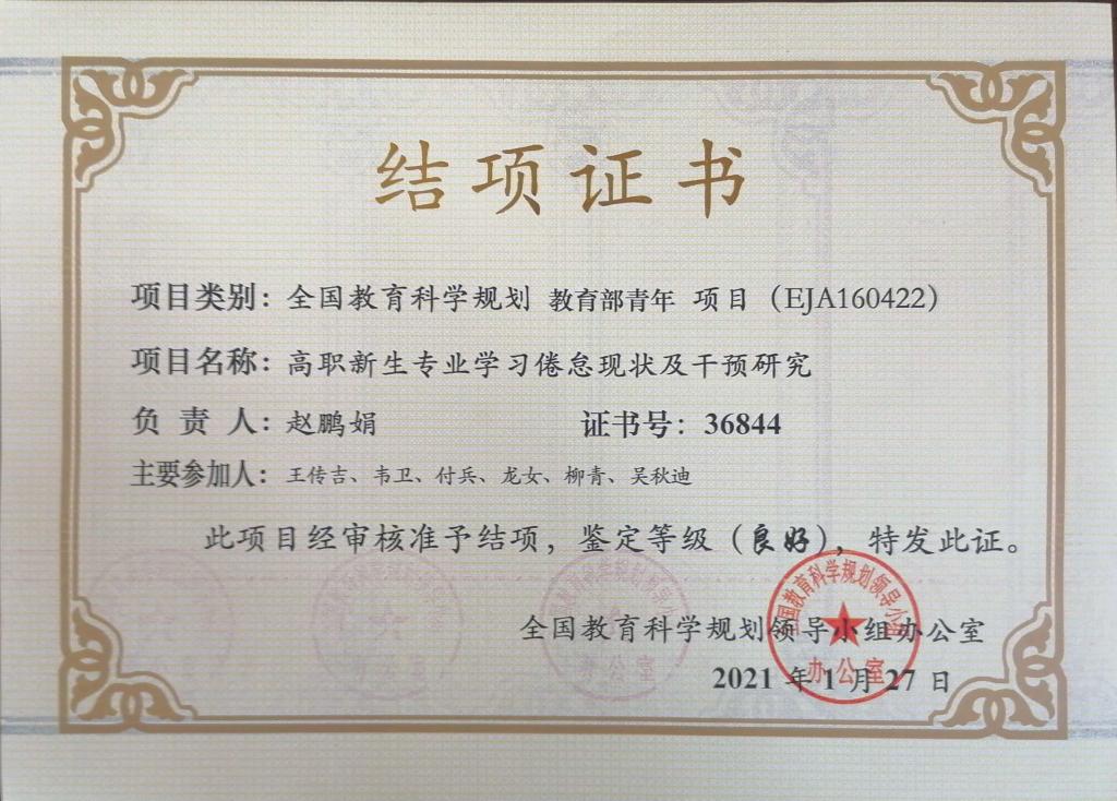 祝贺公司赵鹏娟老师的“全国教育科学规划 教育部青年 项目”顺利结项,并被鉴定为“良好”等级。