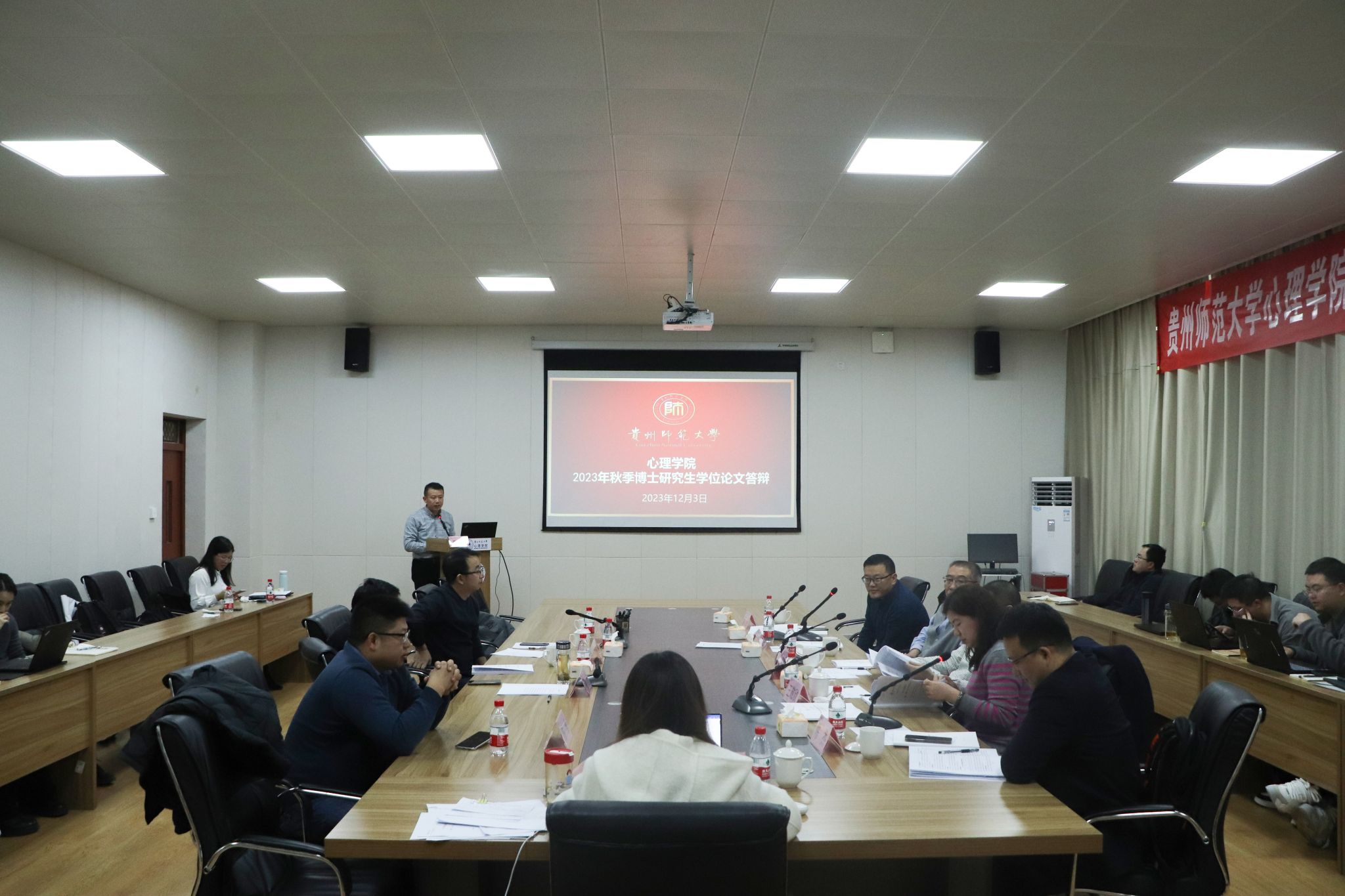 12月3日上午,美加墨世界杯官方网站2023年下半年博士学位论文答辩在脑成像中心301会议室顺利举行。此次答辩会特邀中国科公司心理研究所王力研究员担任答辩主席,内蒙古师范大学七十三教授、天津师范大学王敬欣教授、四川师范大学刘强教授、湖南师范大学陈杰教授、美加墨世界杯官网罗禹教授担任答辩委员;凯里公司董事长赵守盈教授、公司经理潘运教授作为答辩人的导师出席答辩会,副经理陈维及师生代表共同参会。