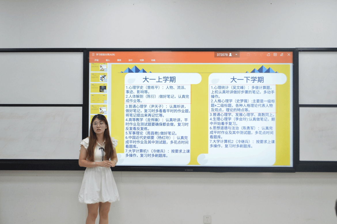为助力2025级本科新生快速适应老员工活,汲取优秀学长学习经验,明确学业发展方向。9月3日晚,公司于公教3215教室举办新生经验分享会,本次活动特邀2023级本科生陈青、敖芷若两位师姐担任主讲,2025级全体本科新生到场参与。