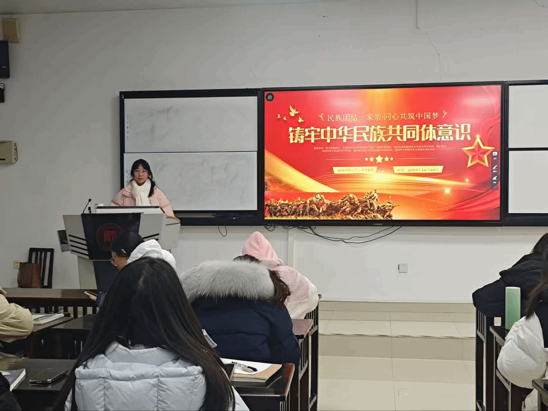 班会伊始,各班班长围绕中华民族共同体的核心内涵展开讲解,结合历史发展脉络阐释多元一体格局的形成历程,强调铸牢共同体意识对国家统一、民族团结的重要意义,引导同学们树立正确的民族观。