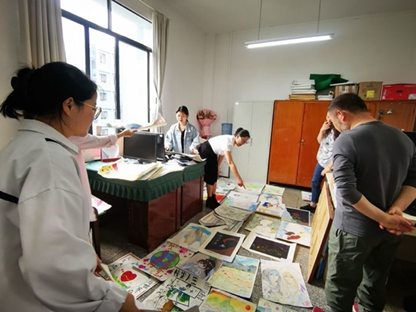 4月17日上午,罗老师带领实习生们到美术组办公室、教育处办公室与各位美术组老师、教育处老师共同审核、筛选员工所提交的“人生天地间——我与世界”主题心理画作品,并选定入围作品,为5.25心理活动周系列活动进行准备。