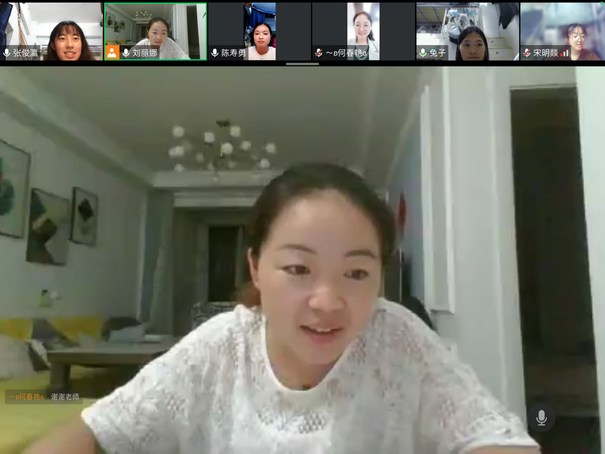 安丽丹:在最后一次会议中,老师给予了我很多的鼓励,让我有了很大的信心,也让我有勇气再一次进行录课,通过老师一个月的指导我相信我有了很大进步,我会鼓起勇气不再紧张与害怕镜头,相信我可以做的更好。很感谢老师一个月以来的付出,我会一直牢记老师说的每一句话。