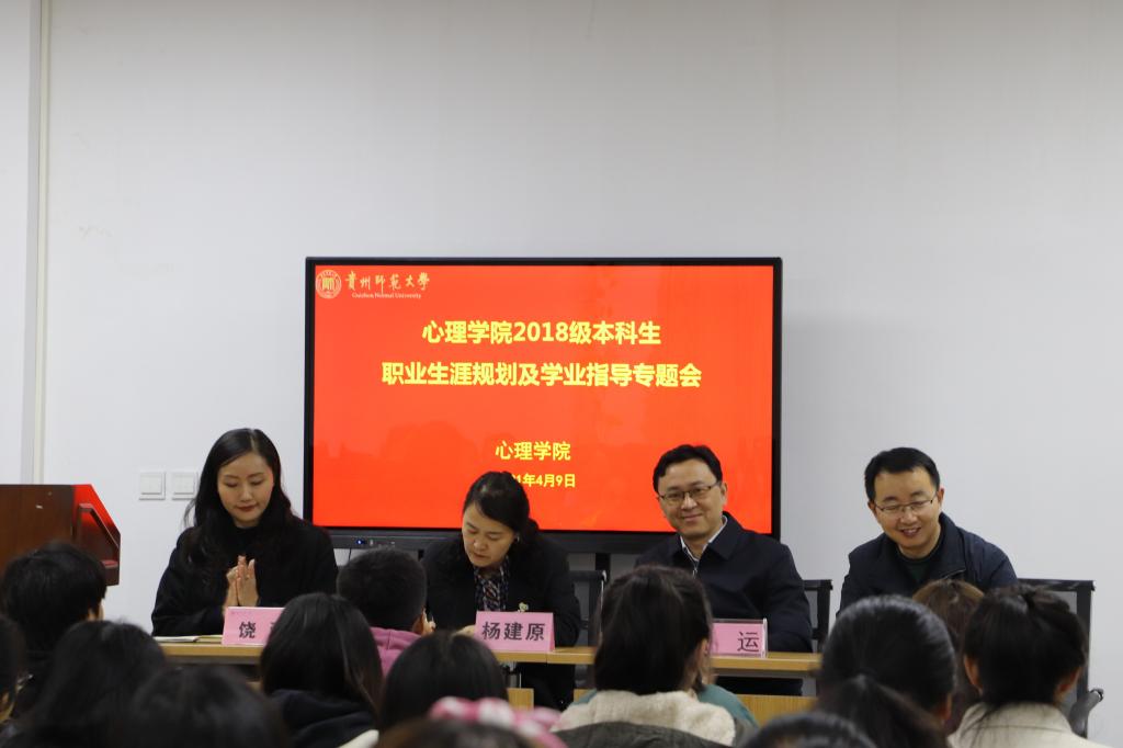 4月9日下午,美加墨世界杯官方网站于花溪校区心理健康教育与咨询中心汇报厅开展了2018级本科生职业生涯规划及学业指导专题会。公司班子成员、2018级辅导员及全体员工参会,会议由公司党委副书记饶蕾主持。
