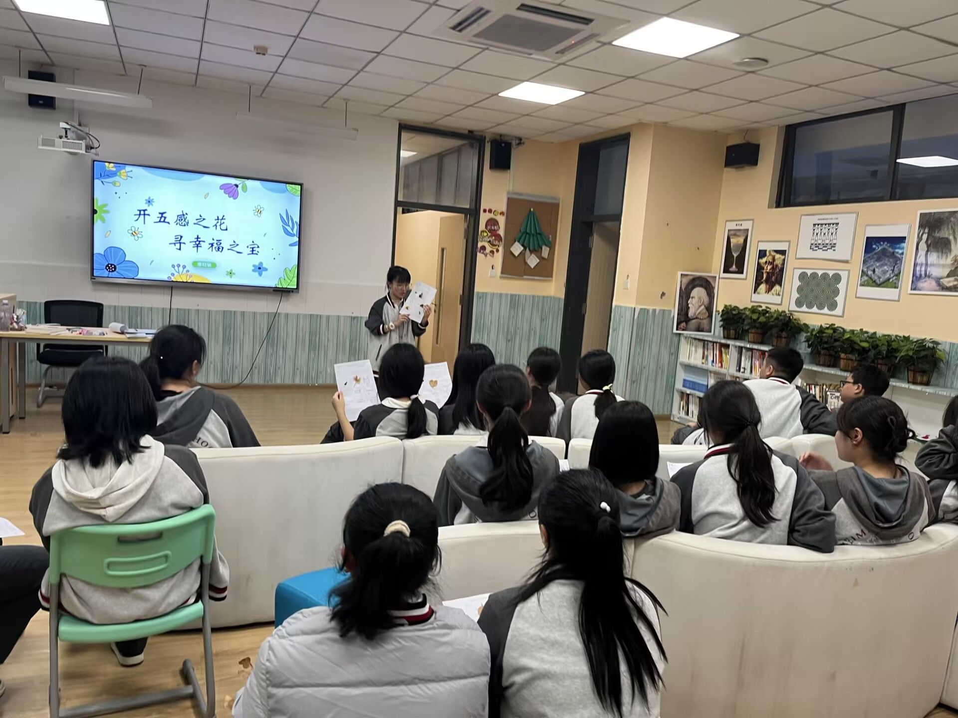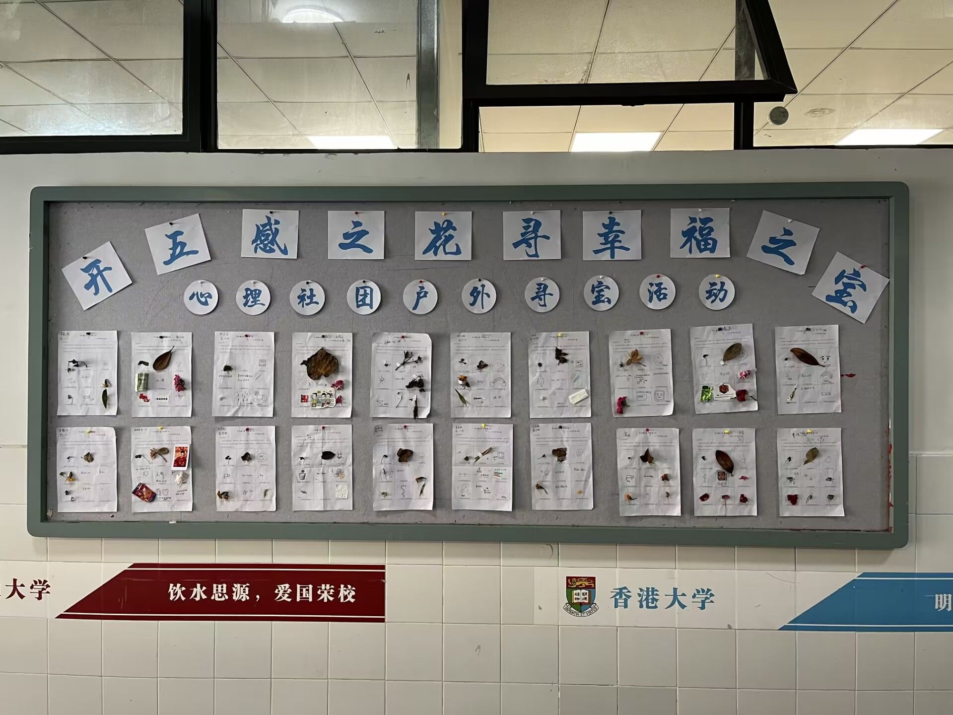 本周社团课由廖晓敏组织进行,主题是“开五感之花 寻幸福之宝”,引导员工带着五感去走进自然,积极觉察身边美好事物,寻找到生活中的“小确幸”,使员工在感受自然、亲近自然、回归自然的同时,也丰富了自己的情感体验,让其体会到了其中的幸福。社团课上完后两位实习生将员工的作品进行整理、挑选,将优秀作品粘贴在高中部教学楼展板上,便于员工参观。