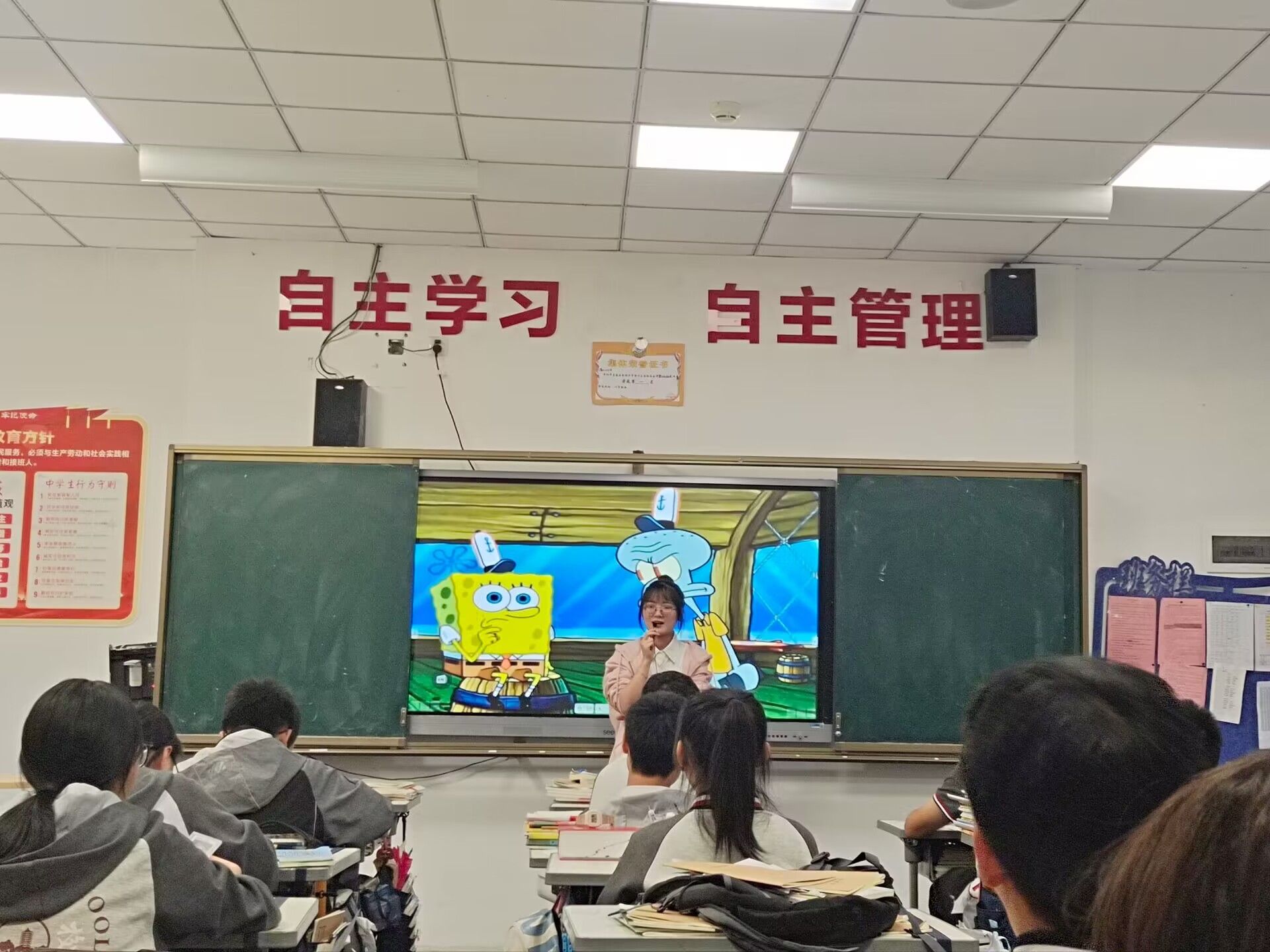 两位实习生的班主任工作也有条不紊地进行着,员工清晨的早读和跑操、中午的合唱与陪餐、晚上的自习以及回员工宿舍查寝时都可以看到他们的身影。在完成各项监督工作的同时也锻炼了自己处理问题的能力,学会了如何正确处理员工之间的矛盾、如何关注到全体员工等。