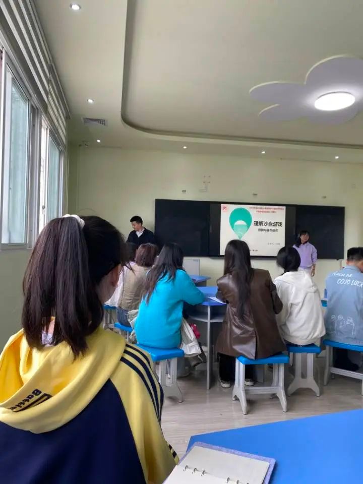 为进一步推进心理健康教育学科教研活动的开展,促进心理健康教育教师的专业发展。4月26日,在心理健康老师吴仕敏的带领下,实习生田佳琪来到了贵阳市师范公司附属实验小学参与了此次培训。培训主要讲述了沙盘游戏的历史与内涵、沙盘游戏的构成与运作、沙盘游戏的基本设置以及现场体验。通过培训后的相互交流,实习生们对沙盘游戏有了新的认知与感受,收获满满。