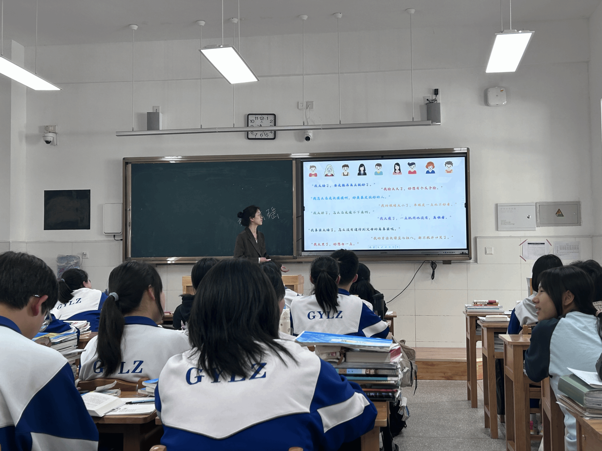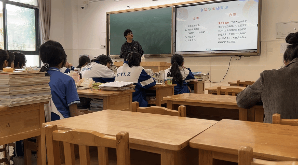 本周在余恬菾老师的细心指导下,四名实习生的集体备课的教案、课件和教具均已完成,在进行无数次的无生试讲的打磨之后,我们分别在高一年级不同班级进行了以“拒绝容貌焦虑”为主题的心理健康课堂,旨在让员工了解容貌焦虑是什么、为什么,并且学会在学习生活中正确的看待自身的容貌问题,拒绝容貌焦虑。