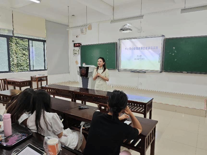 7月11日上午,贵阳实验三中心理健康教育史芙蓉教师受邀为2021级应用心理学专业本科生作题为“中小学心理健康教学设计与实施”专题讲座,讲座通过互动与实践操作形式开展。