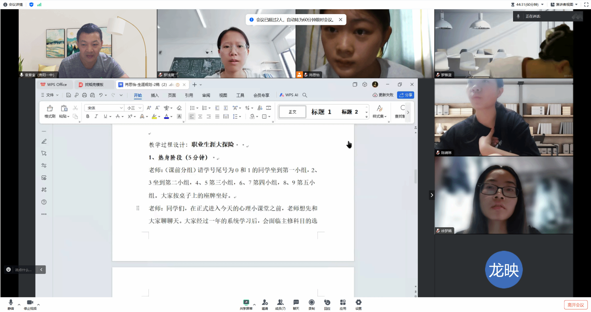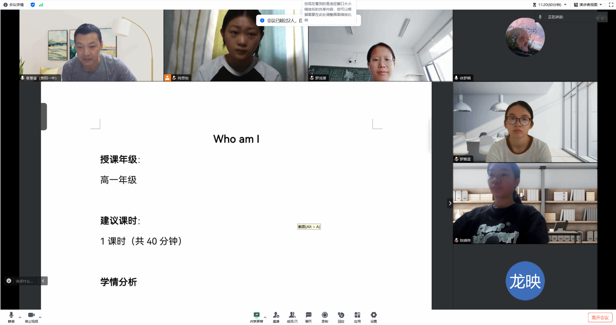 8月18日,贵阳市第一中学袁章奎老师在线上召开了第二小组的第二次指导工作会议,本次会议的内容是小组成员分享具体的教学设计,袁章奎老师根据自己的教学经验指出同学们教学设计的不足,并给出修改意见,帮助同学们磨好第一堂心理课。