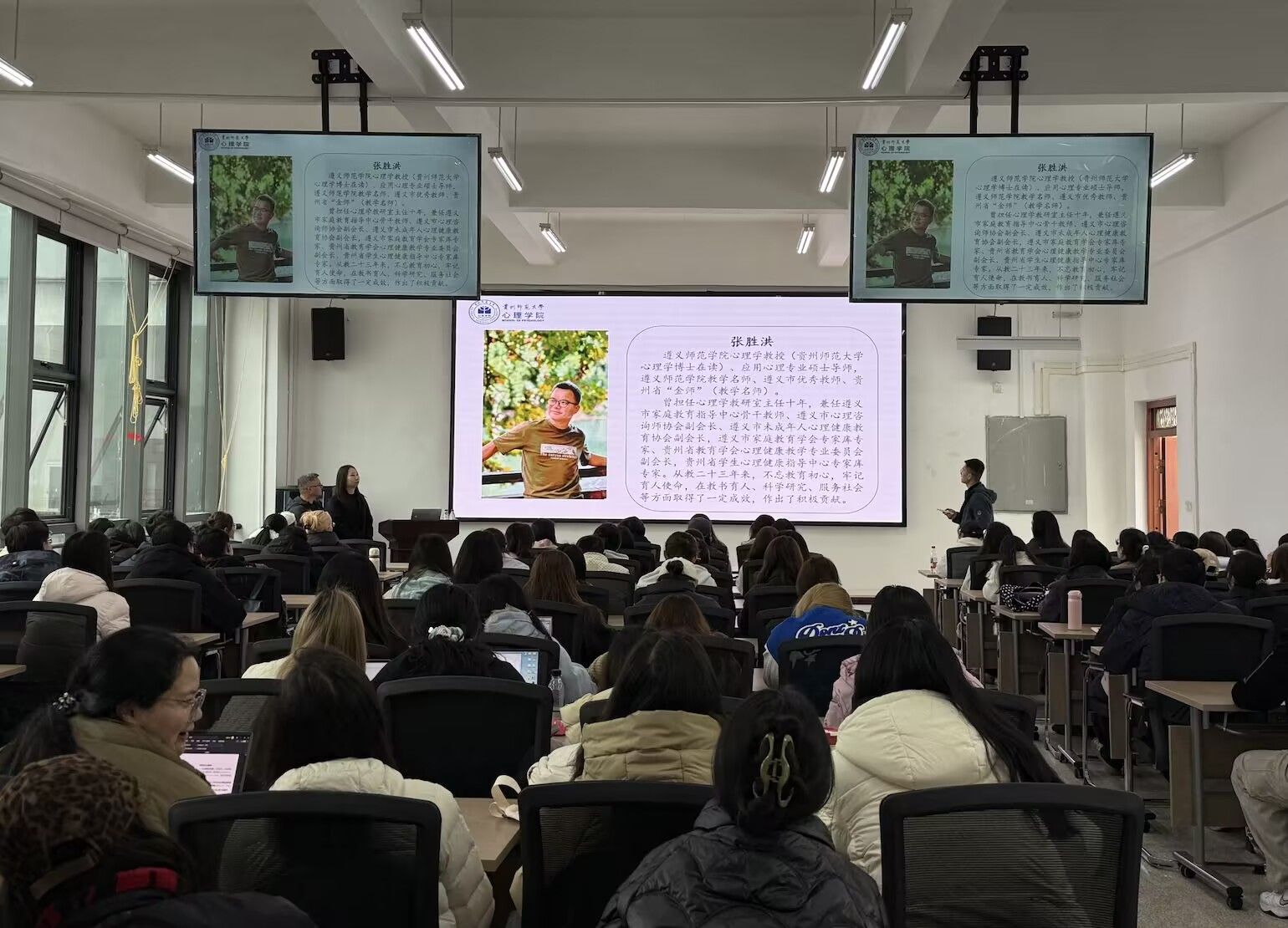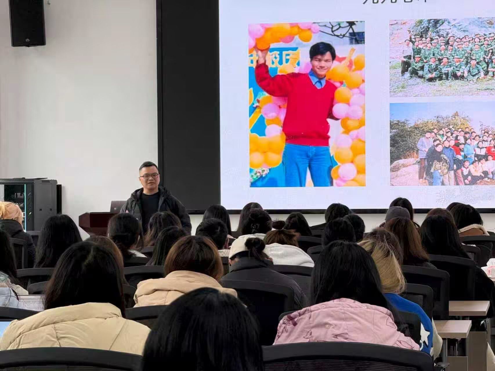 分享环节,张胜洪以《我与心理学共处的27年》为题,用“信心、爱心、恒心”诠释心理从业者应有的初心和素养,他结合经典案例和专业理论反复强调终身学习、直面挑战的重要性,殷殷寄语学子坚守心理育人的初心;曾冬平则从师弟师妹视角出发,细致拆解读研各阶段学习要点,清晰点明学术研究对职业发展的坚实支撑作用,还贴心梳理了中小学心理教师、AI心理测验师等多元就业方向,毫无保留分享了课程备课、个案咨询等实用技能,更暖心提醒同学们提前考取相关证书,为未来职业发展增添竞争力。