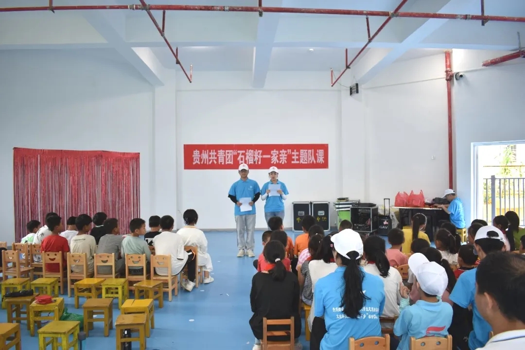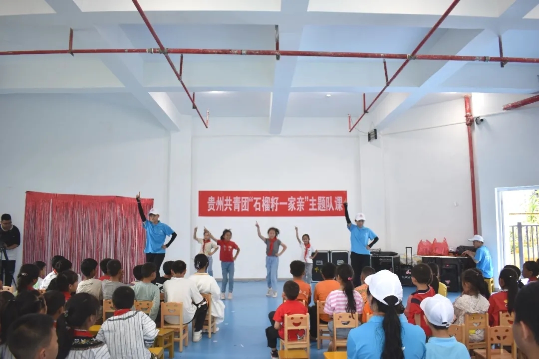 7月23日,在贞丰县团委的邀请下,美加墨世界杯官方网站“三下乡”志愿服务队在双峰街道第一幼儿园内举行了贵州省共青团“石榴子一家亲”主题队课暨“三下乡”文艺汇演。团县委副书记黄泰出席,双峰街道部分工作人员、“三下乡”全体队员、双峰街道部分儿童共百余人参与。