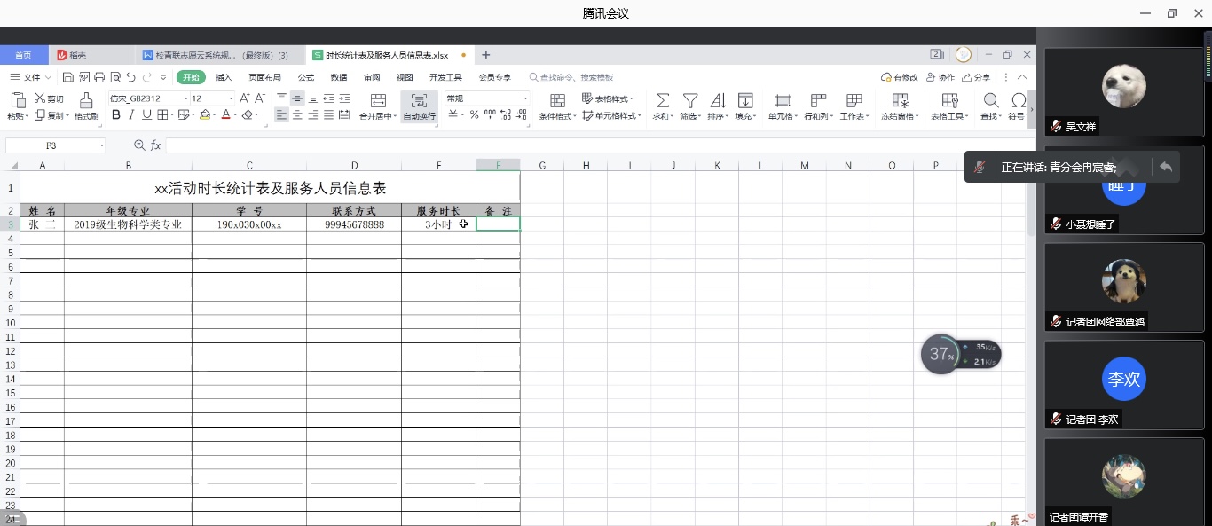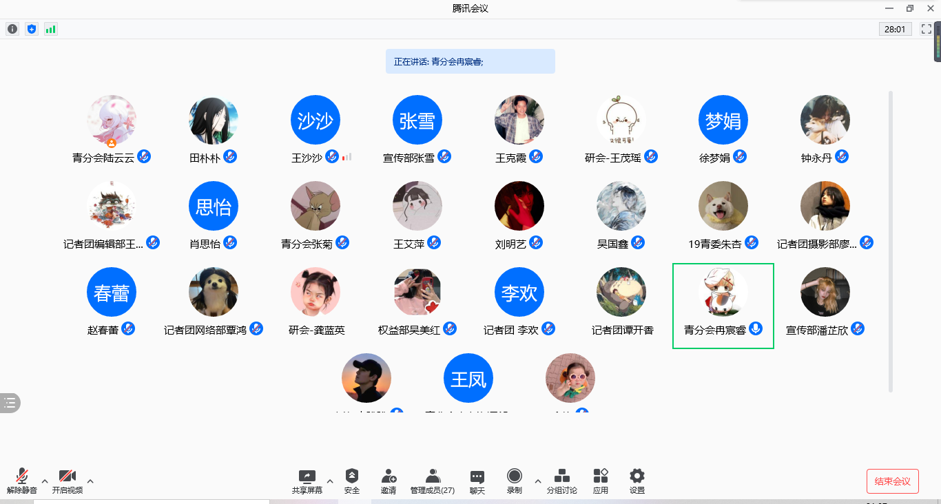 为了保证公司青分会志愿活动审核工作顺利展开,美加墨世界杯官方网站青分会于2021年10月20日晚21点在腾讯会议平台组织召开了线上志愿活动审核工作培训会,本次会议由院青分会会长陆云云主持。院研究生会、各班青年委员、公司各个员工机构代表、院青分会全体成员,共计27人参会。