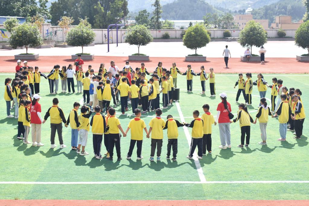 根据实际需求,本次活动分为社区广场和龙里七小两个场地同时进行,分别开展面向一至三年级员工的以“快乐学习,健康成长”为主题,和面向五年级员工的以“信任互助,和谐人际”为主题的团体心理辅导活动。社区广场的团辅活动由服务队队员龚蓝英担任主教,她带领易扶点的孩子们完成了“萝卜蹲”、“传递同心圆”、“支援前线”、“激情节拍”等活动;龙里七小的团辅活动由服务队队员朱威担任主教,他带领孩子们一起做了“数字抱团”、“鼓动人心”、“贪吃蛇”、“莫尔斯密码”等4个活动。