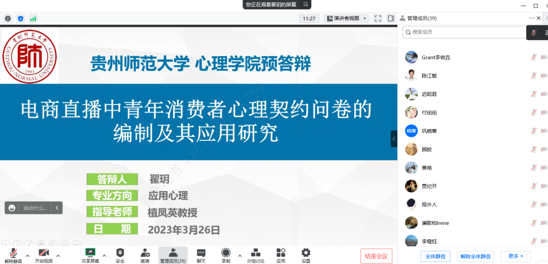 参与本次预答辩的2023届研究生共计112人,含学术型、专业型研究生,5个专业,共分为11组,每组有3位答辩委员参与评审,同时,也有其他年级的员工前来观摩学习。