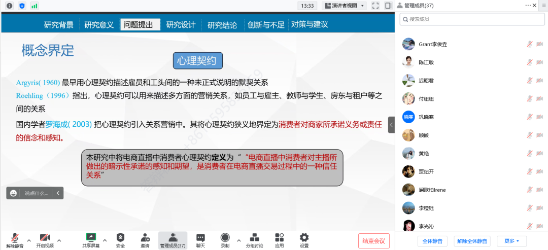 参加答辩的同学们从选题的背景、目的意义、研究设计、创新点及不足与展望等方面对各自的学位论文进行了详细阐述,答辩委员们根据同学们上交的论文和汇报情况,对毕业论文存在的问题提出了针对性的修改意见。