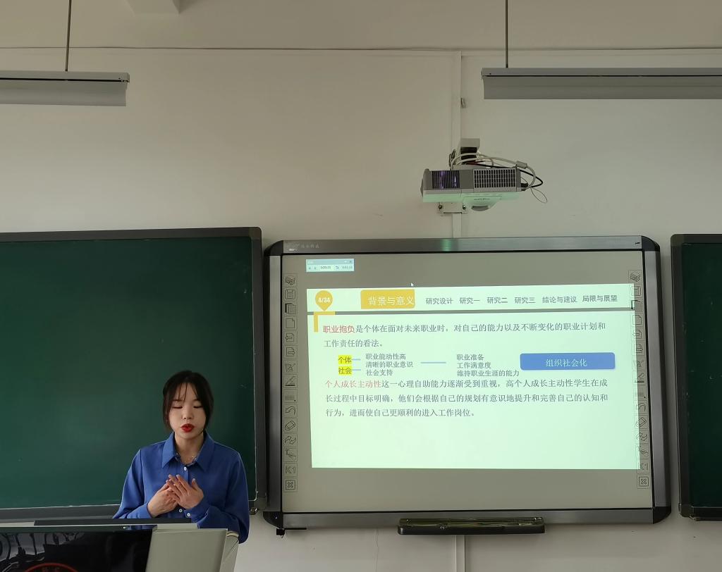论文答辩分为论文陈述、点评提问、回答问题及投票表决四个环节。答辩会上,同学们分别从论文的研究背景、研究目的与意义、文献综述、论文结构、研究结论与建议、创新点及存在不足等方面对毕业论文进行了陈述。答辩委员们对同学们的论文进行了专业、中肯的评价,指出存在问题并提出了改进的意见和建议。同学们对答辩委员们提出的问题一一作答,对委员们提出的意见和改进建议认真记录。答辩环节结束后,答辩委员会召开表决会议,对参与答辩论文进行最终评定和投票表决。