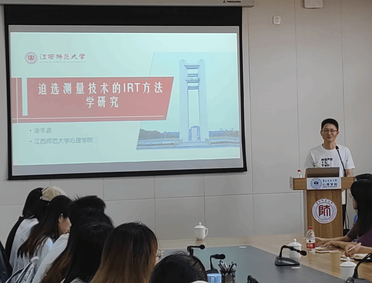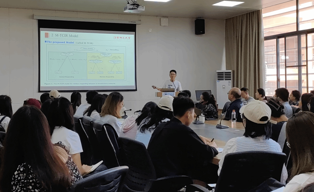 涂冬波教授精彩地呈现了关于“迫选测量技术的IRT方法学研究”的学术报告。在报告中他讲解了迫选测量方法的优势,并重点介绍了涂冬波教授团队近年来关于迫选测量技术的项目反应理论(Item Response Theory, IRT)方法学的研究。
