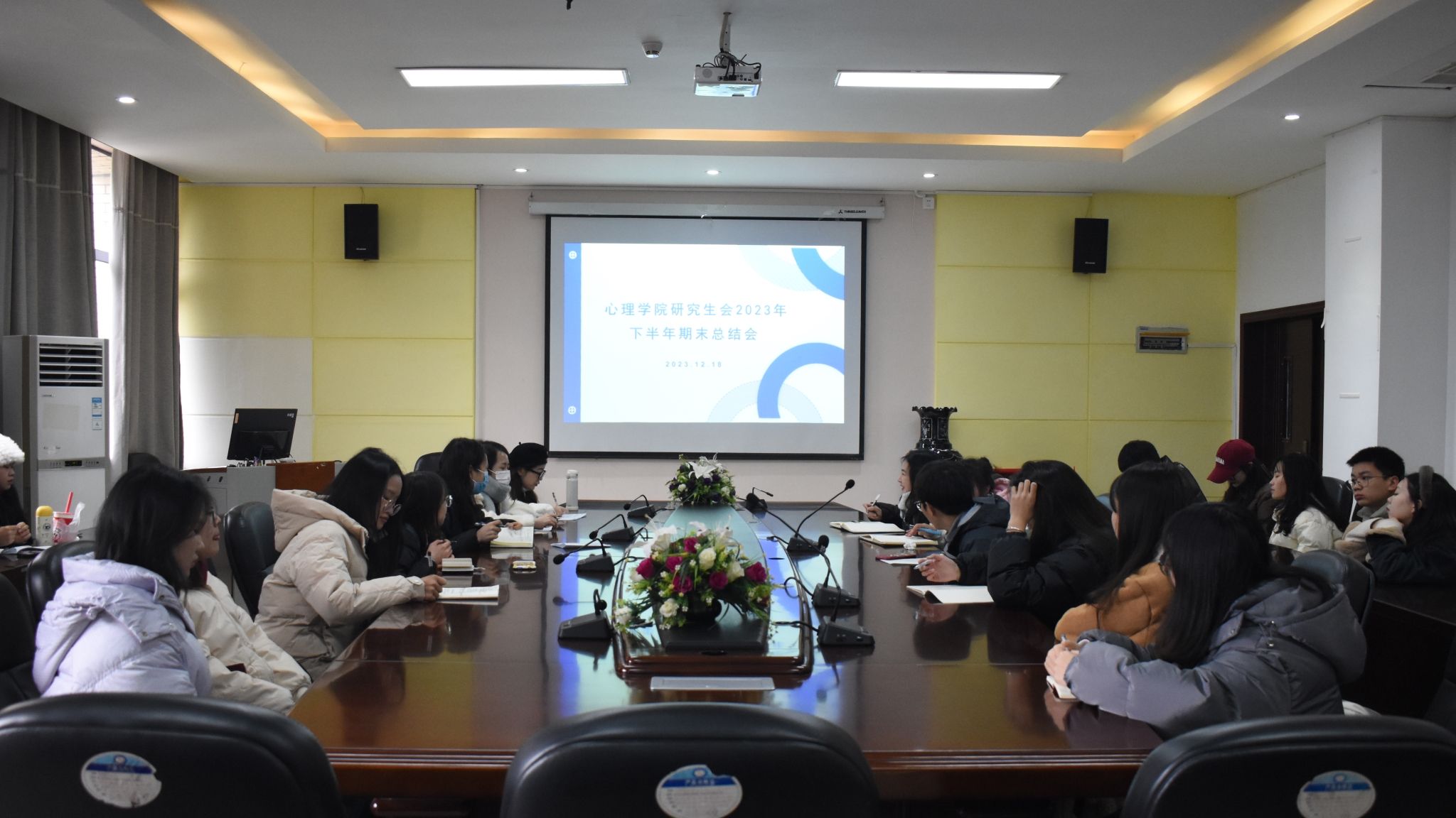 为全面回顾本学期美加墨世界杯官方网站研究生会的工作开展情况,进一步加强研究生组织的自身建设,明晰下学期整体的工作方向与内容,美加墨世界杯官方网站研究生会于12月18日中午在公司楼2302会议室召开期末总结会。本次会议由研究生会主席团成员周馨悦主持,第五届研究生会全体成员参会。