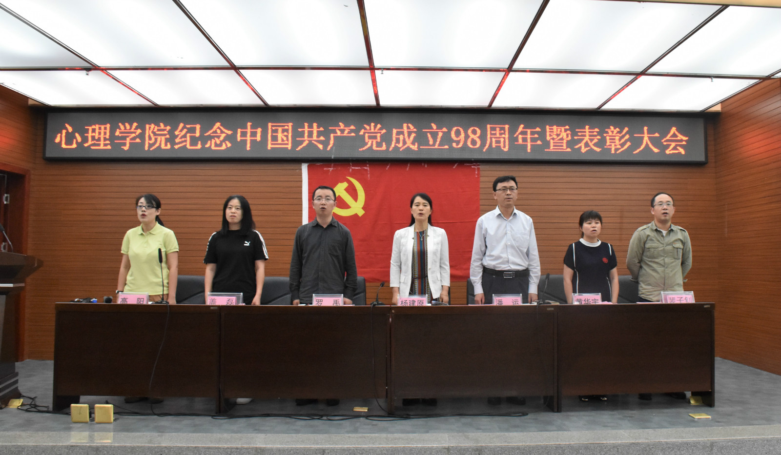 杨建原作总结发言,她说,今天我们在这里隆重聚会,纪念中国共产党建党98周年,组织新党员入党宣誓、老党员重温入党誓词,表彰先进集体和先进个人,目的是通过回顾历史、总结工作、表彰先进、明确使命。首先代表公司党委向全公司党员致以节日的问候,向受到表彰的先进集体和个人表示最热烈的祝贺,向全院教职工生一直以来对公司工作的关心、理解、支持与勤奋工作表示衷心的感谢!她说,刚刚成立的美加墨世界杯官方网站从成立之初就站在了一个较高的起点,面临各种的竞争压力与挑战,当前,党中央提出了“不忘初心、牢记使命”主题教育的号召,全体共产党员如何结合工作实际创造性地开展工作,“守初心、担使命、找差距、抓落实”,在推动公司发展上真正取得实效,为此她向师生党员提出几点希望:一是不忘初心,坚定理想信念,全体党员师生要进一步坚定对马克思主义的信仰、对中国特色社会主义的信念,传承红色基因,增强“四个意识”、坚定“四个自信”、做到“两个维护”,师生党员要自觉践行社会主义核心价值观,教师要坚持立德树人为己任,争做“四有”好老师;二是牢记使命,发挥模范带头作用,作为中国共产党的一员,肩负社会责任,要随时谨记自己在党旗下的庄严而神圣的承诺,严守党的纪律,履行党员义务,严格要求自己,恪尽职守,敢于担当,发挥一名共产党员应有的先锋模范作用;三是找准差距,对表对标,支部书记要认真履职,组织好各支部党的理论学习,深入开展革命传统教育、形势政策教育、先进典型教育和警示教育,认真落实好“三会一课”、主题党日等制度,保证基层党组织坚强有力;四是围绕中心抓党建,抓好党建促发展,围绕美加墨世界杯官方网站当前师范专业认证工作,全院教职工生都要积极主动作为,保质保量完成自己的工作职责,特别是党员师生,要继续发挥公司党组织特别能战斗、特别能吃苦、特别能奉献的优良传统,在重大工作面前以身作则、率先垂范,公司党委也要善于发掘身边先进典型,弘扬正能量,树立正面典型;五是希望各党支部结合工作实际,创造性地开展特色主题党日活动,以良好的精神面貌与实际行动庆祝中国共产党的98岁生日。