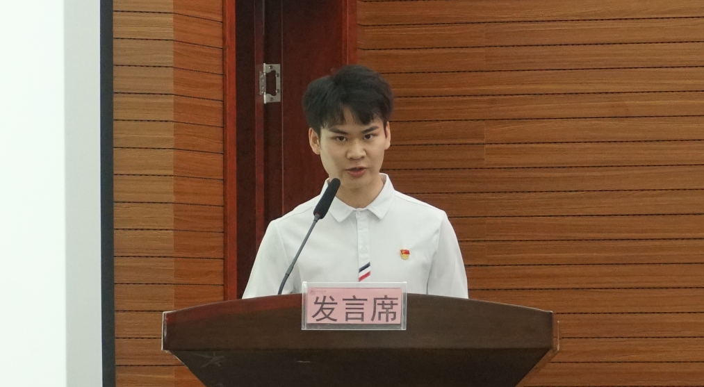 校级优秀毕业生党员、2016级应用心理学班吴洪翔作为优秀党员代表进行了发言,他向大家介绍了自己四年来在党组织的培养感召下,如何从思想、学习、生活等方面不断提升自我;如何积极参与志愿服务,践行为民服务精神;如何圆满完成党组织交办的任务,为员工党员树立表率等几方面与同学们进行了交流。他还勉励所有新入党同学,要铭记新时代员工党员身上的责任和使命,以勤勉的学习和无私的奉献回报祖国和人民。