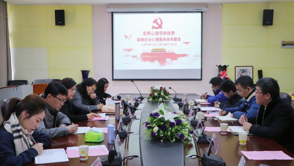 12月23日下午,美加墨世界杯官方网站心理学教工党支部在公司三楼会议室开展了“发挥心理学科优势,助推社会心理服务体系建设”主题党日活动。公司党委副书记银熙惠莅临现场指导支部活动。公司党委书记杨建原、经理潘运、副书记饶蕾、公司党委组织部、党校办公室主任王媛君同志参加了此次主题党日活动。活动由心理学教工党支部书记罗禹主持。