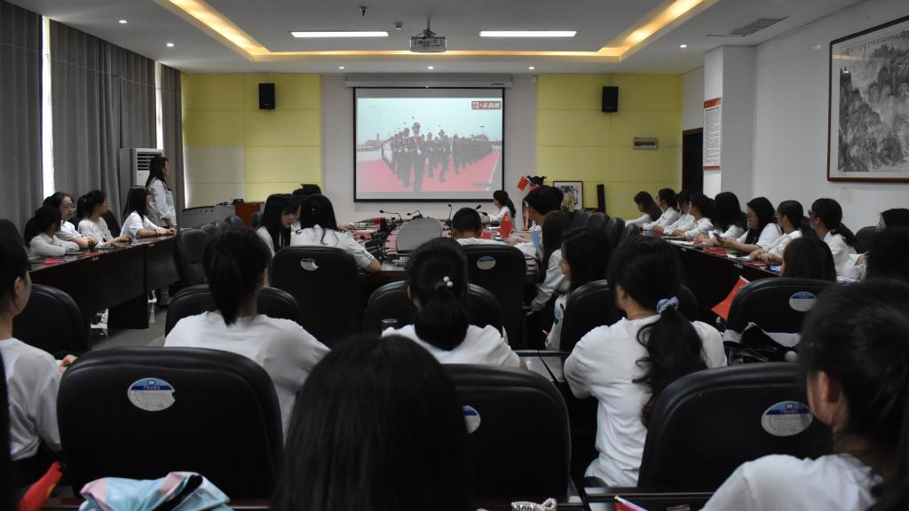 (公司领导及部分师生党员代表在花溪校区会议中心观看庆祝大会,同学们在教室自行观看)