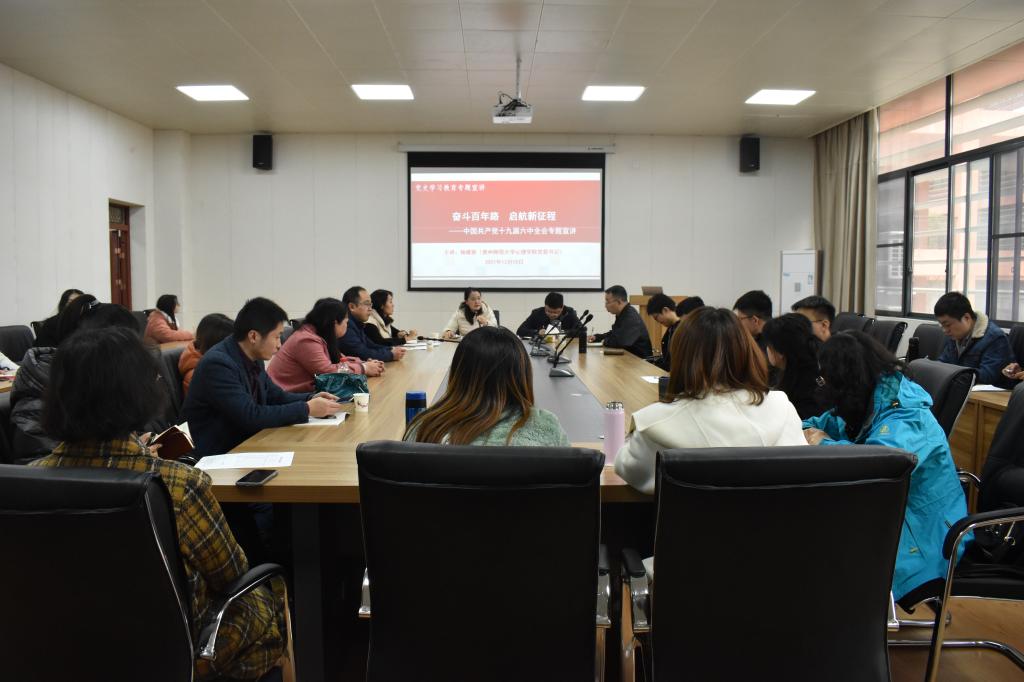 杨建原指出,全院教职工生要把学习宣传贯彻党的十九届六中全会精神作为当前和今后一个时期的重大政治任务,各党团组织要精心组织学习,广泛开展宣传宣讲。教师党员要带头学习,夯实理论学习基础,并不断提高学习成效,增强行动自觉、做到学以致用。