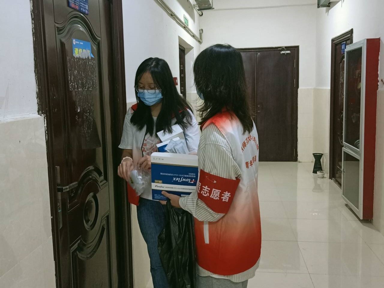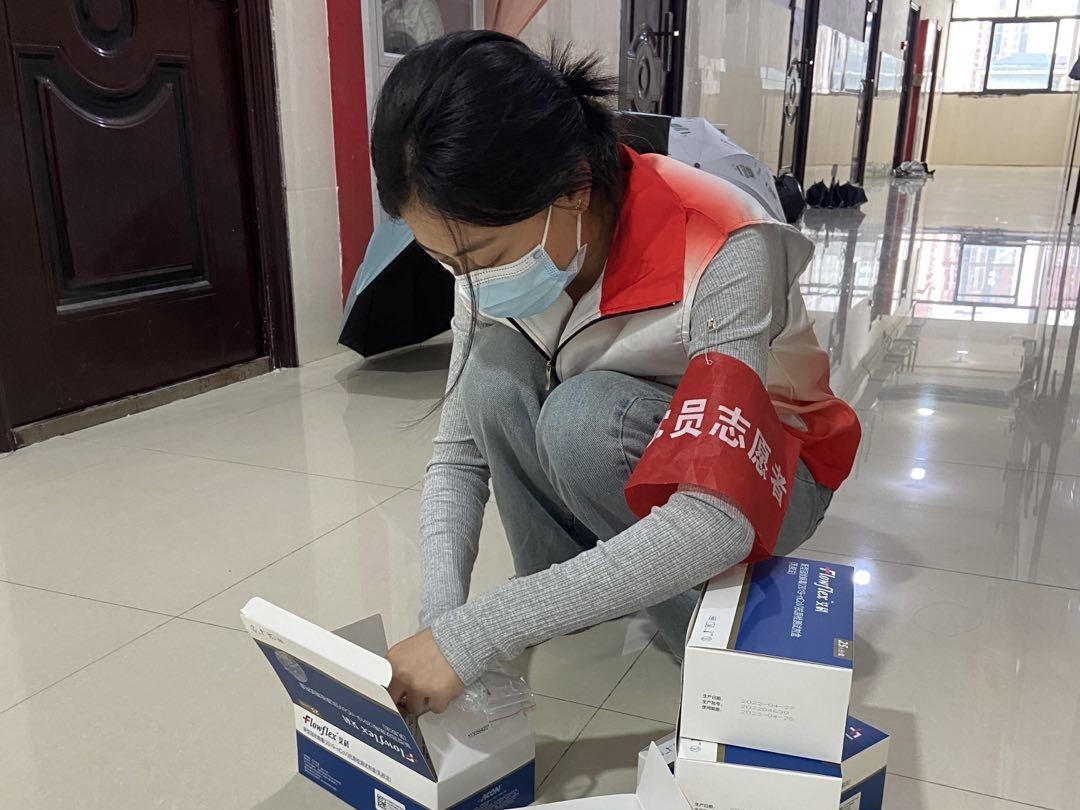在党支部书记高阳老师的号召下,支部党员积极报名,主动参与。他们佩戴党徽、服从安排,冲锋在前。在做好自身防护的同时,逐间寝室分发抗原检测试剂,提醒同学们注意事项,对试剂进行回收并核对数量,全力以赴做好员工的抗原检测。当好防疫“宣传员”、“协调员”,为打赢疫情防控阻击战贡献了党支部的“红色力量”。