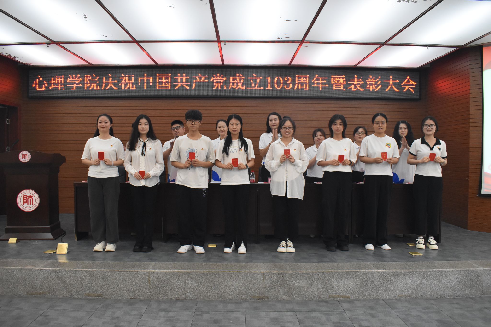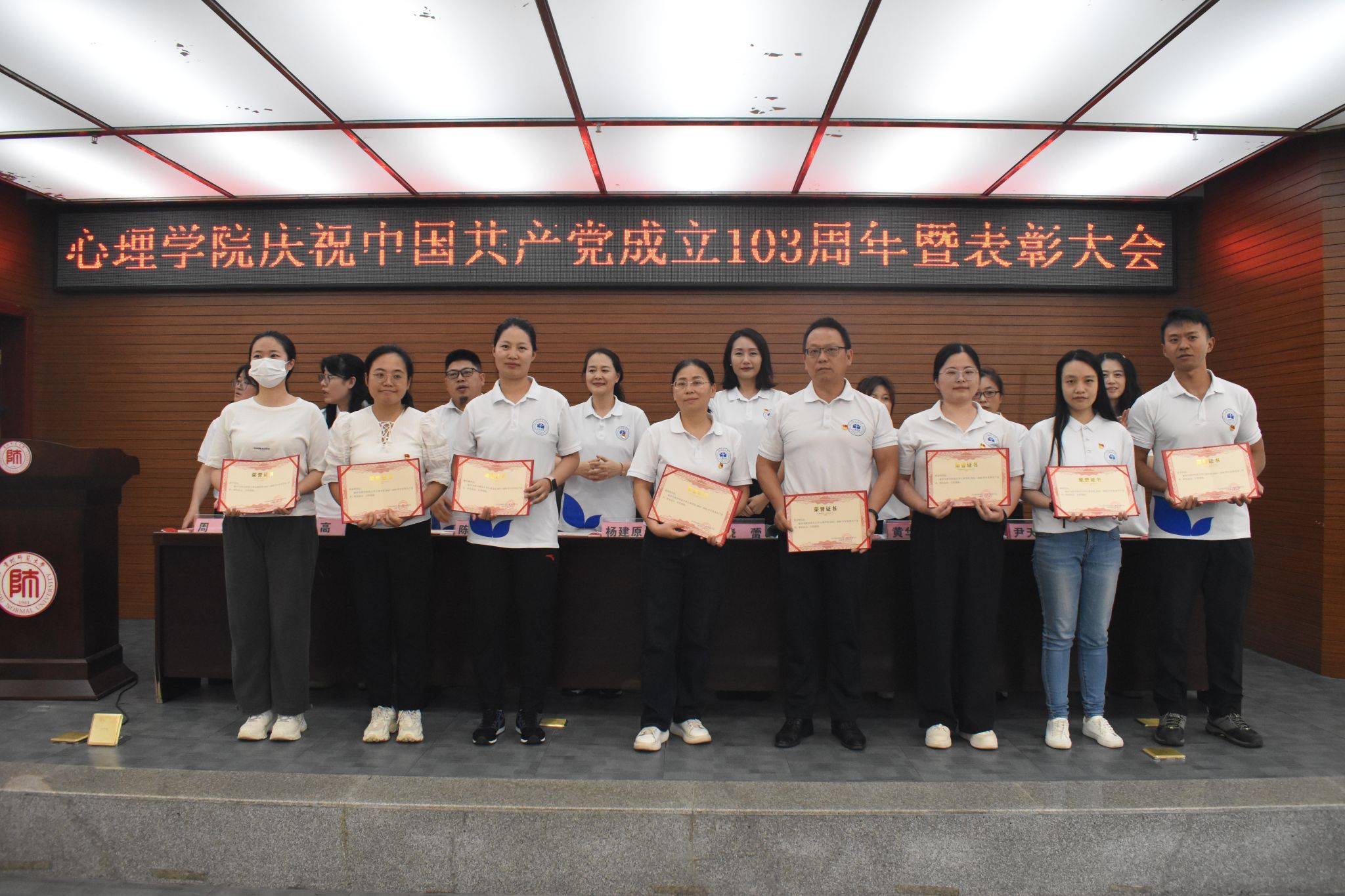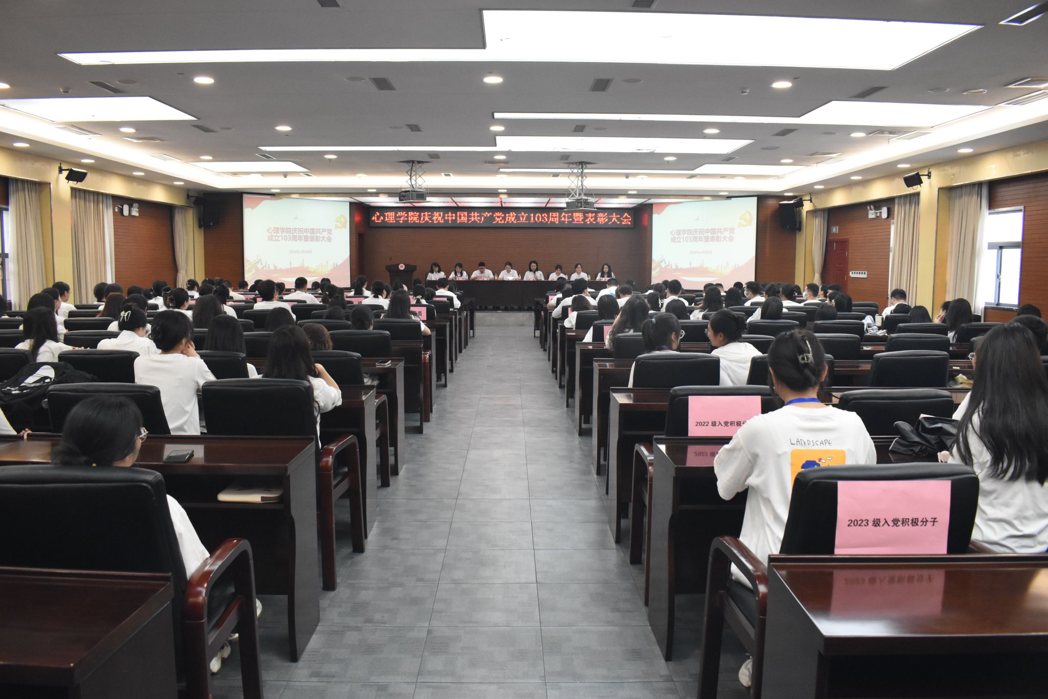 6月28日,美加墨世界杯官方网站于花溪校区会议中心二楼报告厅成功召开庆祝中国共产党成立103周年暨表彰大会。公司党委正处级组织员杨建原,党委副书记饶蕾,副经理陈维,党委委员、组织员黄华宇,团委书记高阳,教学管理科科长盖磊,心理学系副系主任、教工第一党支部书记尹天子,研究生第四党支部书记周瑗出席大会。公司全体师生党员、部分入党积极分子以及非党员师生代表参会,大会由饶蕾主持。