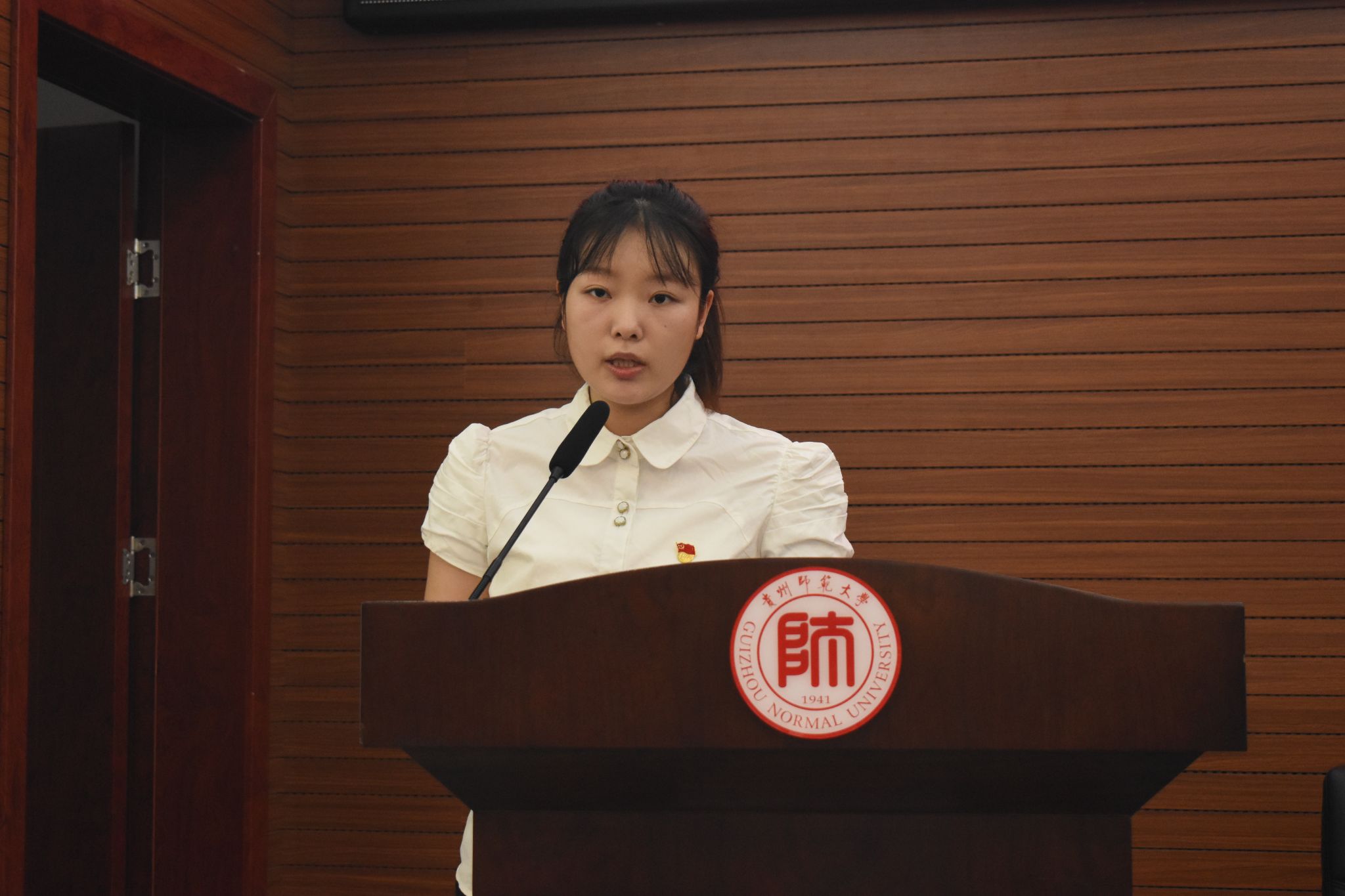 接着,优秀党员代表范亭亭同志发言。范亭亭分别从党员和研究生两个角色出发,向大家阐述党员应该承担的责任和义务。她认为我们应该时刻保持党员的先进性和纯洁性,充分发挥先锋模范作用,用自己的专业知识和技能积极服务社会。