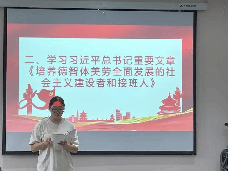 活动伊始,周玉玲同志领学了习近平总书记的重要文章《培养德智体美劳全面发展的社会主义建设者和接班人》,强调新时代教育应聚焦人的全面发展,这要求教育实践不断创新完善,作为师范生的我们更要不断提升自我,力争在走向岗位后,能促进每位员工健康成长,个性发展,为国家输送全面发展的高素质人才。