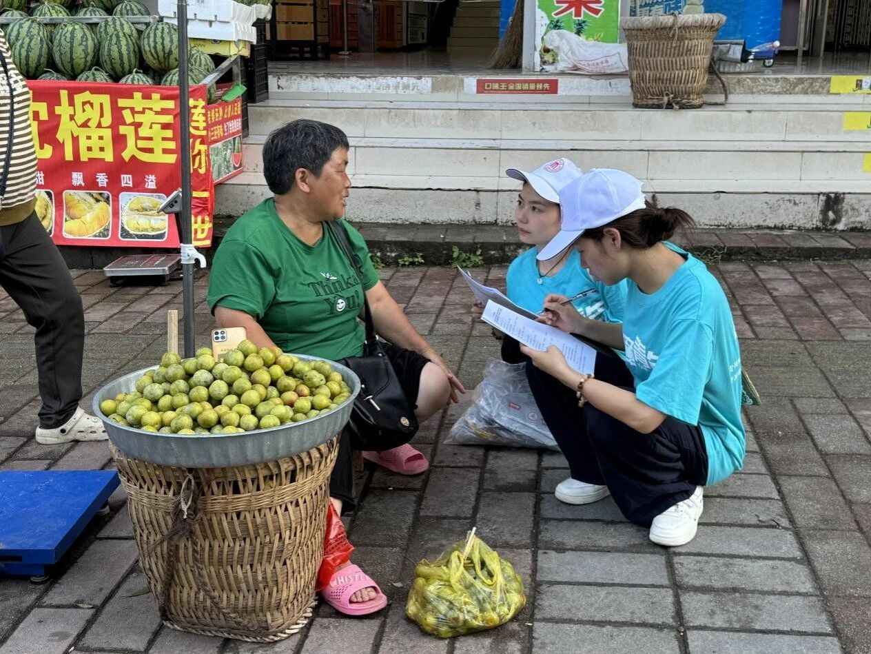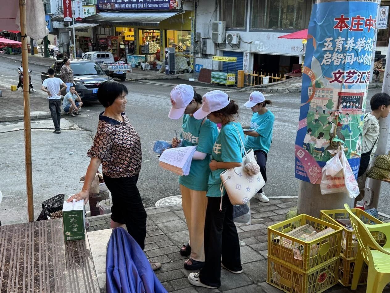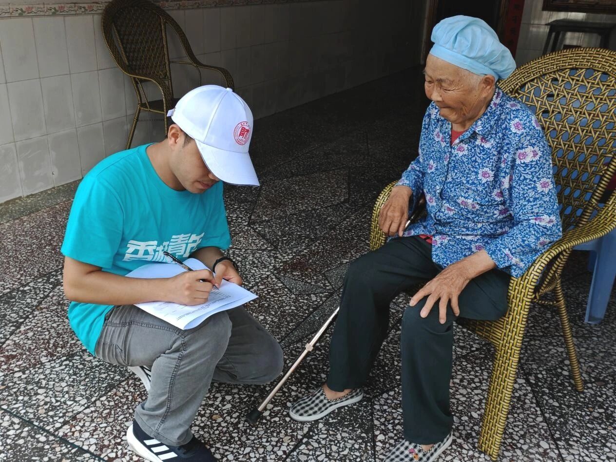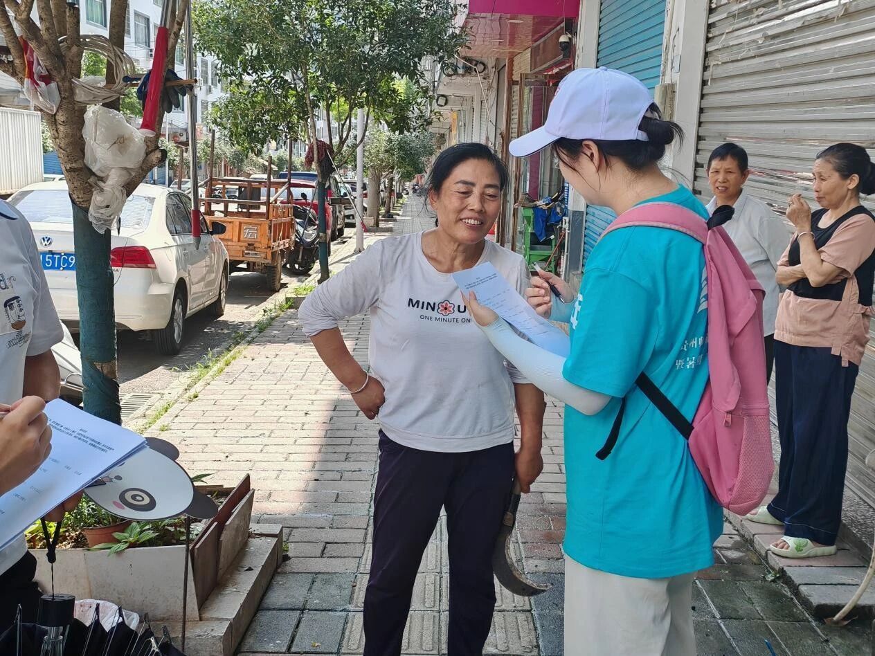 下午,服务队分组走进本庄镇各街道各社区,开展老年人心理健康状况调研。队员们耐心与老人交流,用当地方言亲切询问他们的生活状况和心理需求,并协助填写问卷。在走访过程中,队员们不仅收集了宝贵的一手数据,还通过倾听和陪伴给予老人情感支持,传递温暖关怀。