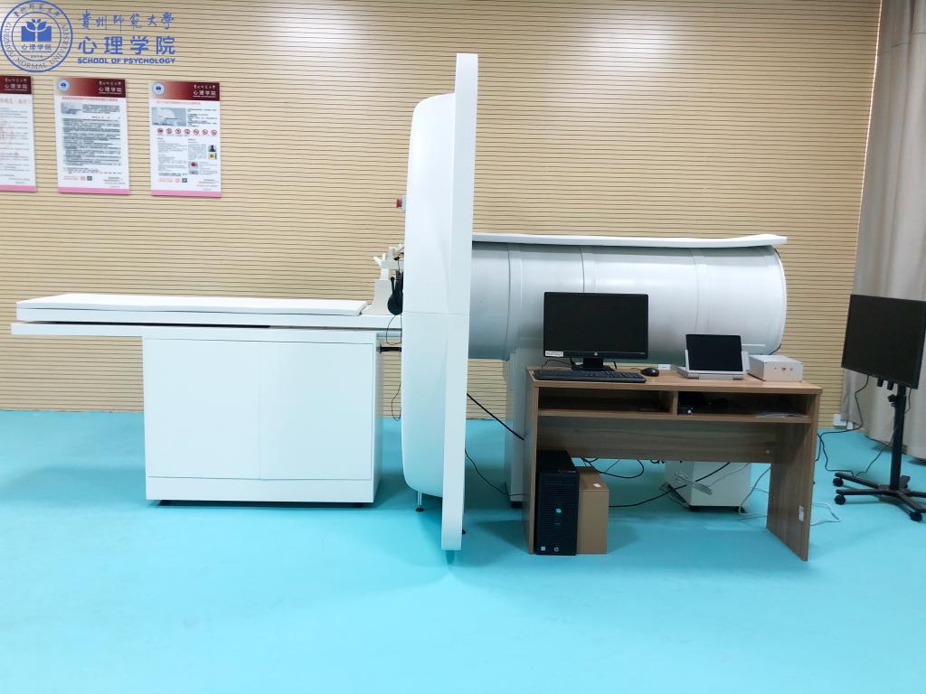 MRI模拟实验室配有由美德医疗提供的模拟扫描仪一套,主要用于被试在正式实验前的环境适应。很多正常人在狭小空间中会感到不适和不安(如:幽闭恐惧症等)。若直接开展正式的磁共振成像实验,则会影响到扫描效果或导致扫描失败, 因此,在正式实验之前,通过MRI模拟实验室让被试在正式实验前适应环境,比如机器响是正常现象,不要乱动等。让被试提前学会一些小技巧,减轻被试的心理负担。同时也能发现那些不知道自己有幽闭恐惧症的被试, 以此降低实验的失败率。